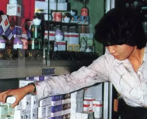這是沈陽(yáng)聯(lián)營(yíng)公司當(dāng)年的化妝品柜臺(tái),同樣,顧客是不能直接接觸到商品的,只有通過(guò)照片上的營(yíng)業(yè)員隔著柜臺(tái)將你想看或者想買的商品遞給你。因此,那時(shí)候商店對(duì)營(yíng)業(yè)員就有一個(gè)叫做“百問(wèn)不煩”、“百拿不厭”的要求。