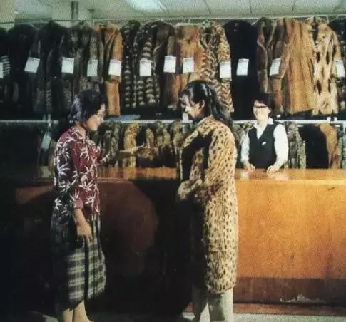 聯(lián)營(yíng)公司的皮毛服裝部,照片上的女子穿著的像是一件猞猁皮大衣。在那個(gè)年代,人們對(duì)野生動(dòng)物保護(hù)還沒(méi)有重視,更沒(méi)有《野生動(dòng)物保護(hù)法》,所以,那時(shí)候類似沈陽(yáng)聯(lián)營(yíng)公司這樣的大型百貨商店皮貨部銷售的裘皮服裝,有狐貍、貉、貂等動(dòng)物皮制作的服裝也屬于很正常的。