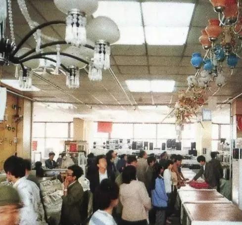 這一定是聯(lián)營(yíng)公司燈具部的銷售區(qū),棚頂上吊著各種燈具。現(xiàn)在的百貨商店再也找不到賣燈具的了。