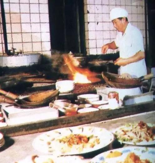這是當(dāng)年盛京飯店的一位大廚在烹飪菜肴的場(chǎng)面,灶房里的條件與現(xiàn)在無(wú)法相比。