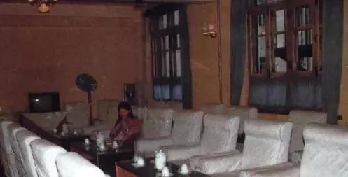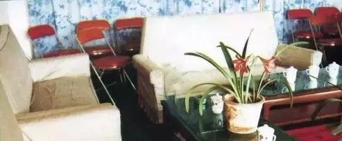 這里應(yīng)該是這家旅社的一個(gè)會(huì)議室。那個(gè)年代的沙發(fā)、金屬折疊椅,傳統(tǒng)的茶幾上的水杯煙灰缸,還有君子蘭的花盆。充滿著那個(gè)年代會(huì)議室的特色。