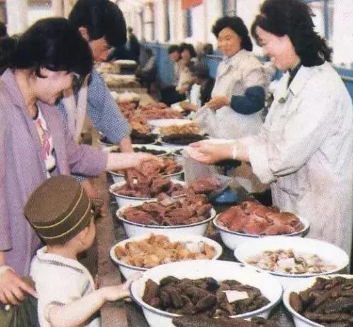 當(dāng)年北行農(nóng)貿(mào)市場(chǎng)賣熟食的攤位,攤位前那個(gè)小朋友戴著的帽子應(yīng)該是那個(gè)年代孩子們比較時(shí)髦的物件。